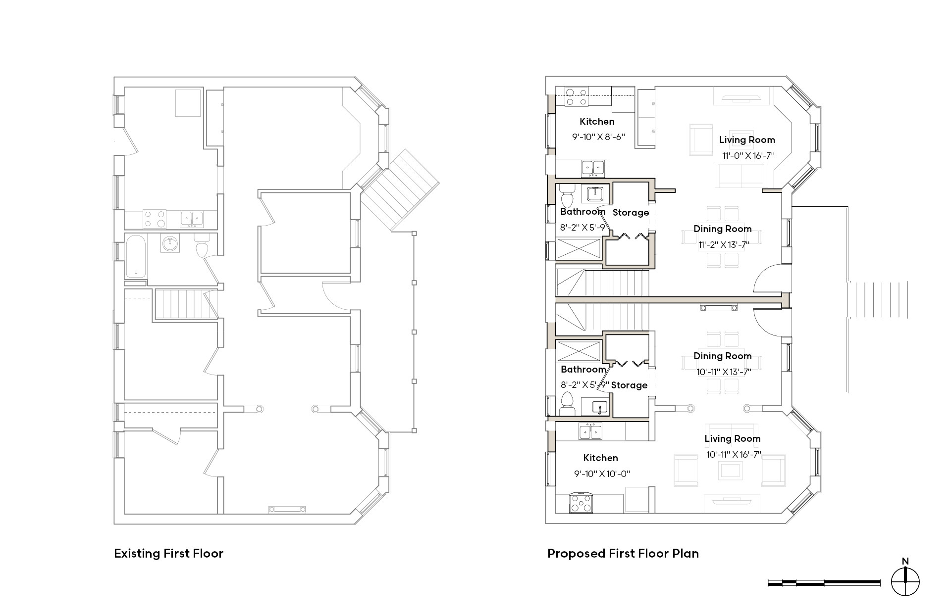 Size: 2,600 SF Gut Renovation creating Two Duplex Units